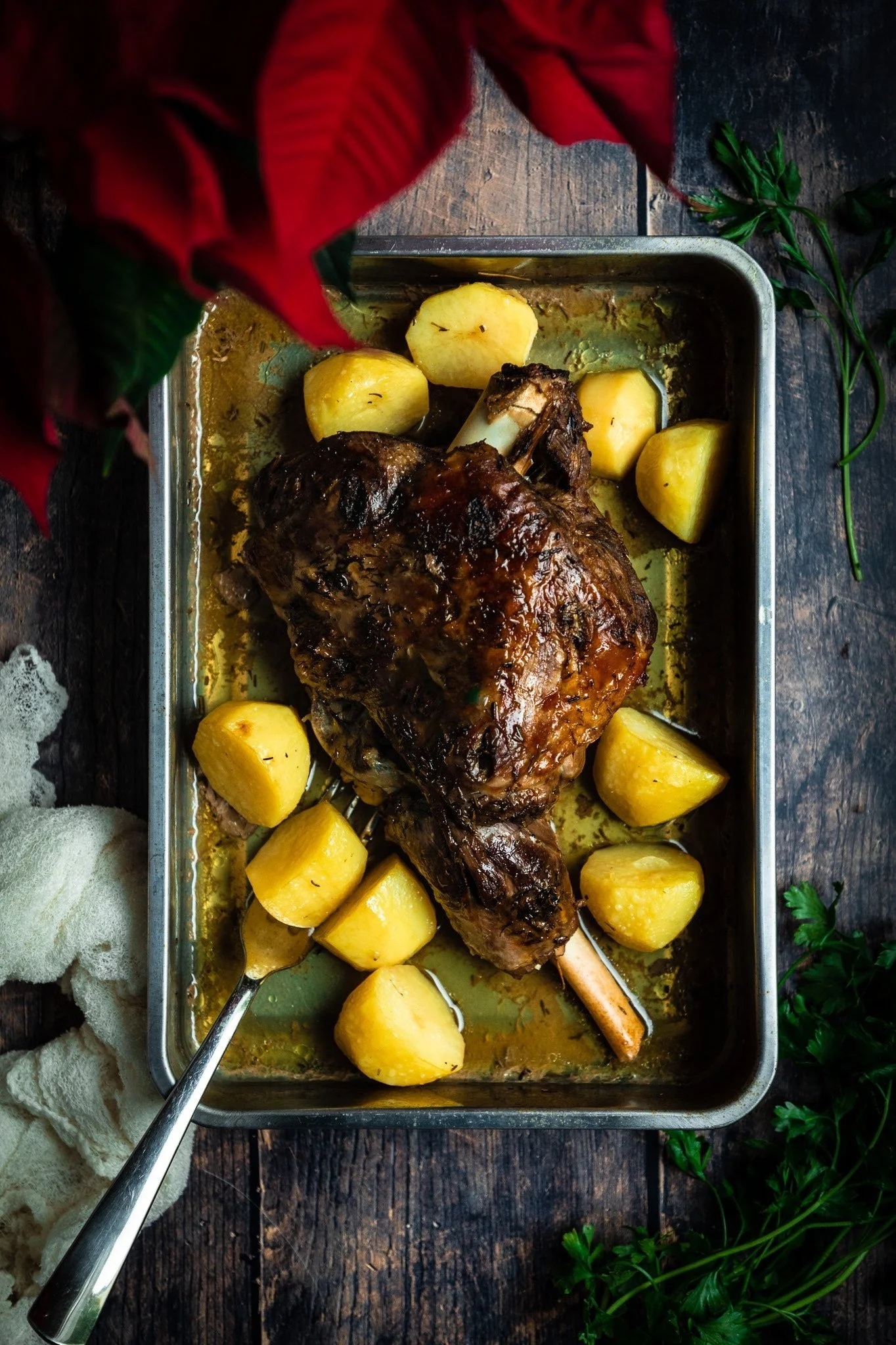 Cover with a sheet of baking paper, then cover with a large sheet of foil over the baking paper and make sure to tuck in the sides so that the heat doesn’t escape. Roast in the oven for at 4 hours or until very tender, basting the meat with the juices every hour or so.